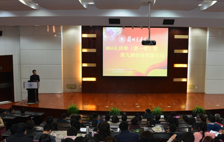 兰州交通大学MBA礼师季(第1季)活动于2017年12月10日正式开启,经济管理学院、MBA中心主任赵延龙院长、研究生学院杨军副院长、研究生院管理科李海龙科长、研究生院培养科孙雷军科长、华城集团总经理王成如、华泰证券公司甘肃分公司经理胡葆春、经济管理学院副院长王久梗、袁杰、梁恒、MBA任课教师、MBA导师、MBA中心工作人员、2018届毕业生及本科生代表等300多人参加了此次活动,本次活动由MBA中心常务副主任、经管学院副院长靳文强老师主持。